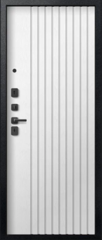 Надежная входная Дверь V-15 Черный муар + Бетон темный - Софт ясень белый премиум класса по цене 44 351 руб. Большая толщина стали защитит от проникновения в ваш дом, квартиру или коттедж. Используется очень качественная фурнитура: замки, цилиндры, ручки, защелки. Покрытие и отделка двери изготовлено под внимательным контролем производителя. Дверь имеет долгий срок службы и гарантию.